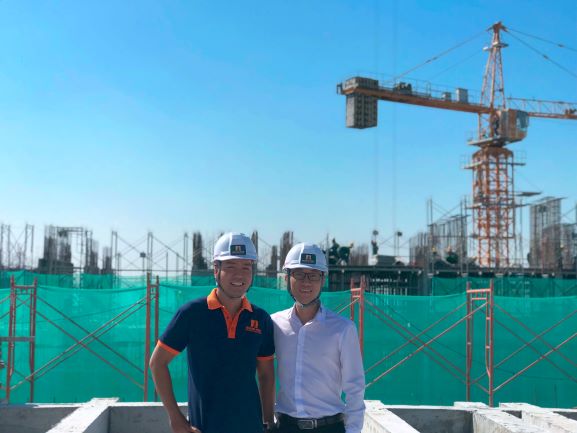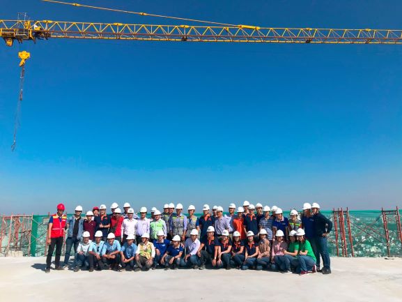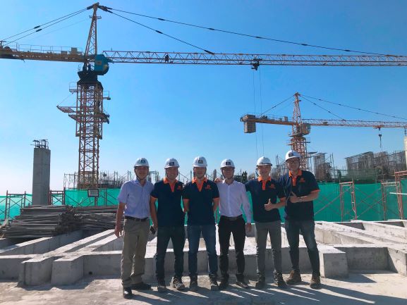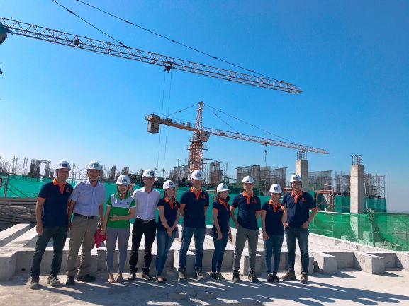 Cán bộ Ban quản lý Dự án chụp hình lưu niệm - Phía sau, Blokc B1 đã hoàn thành thi công tầng 35