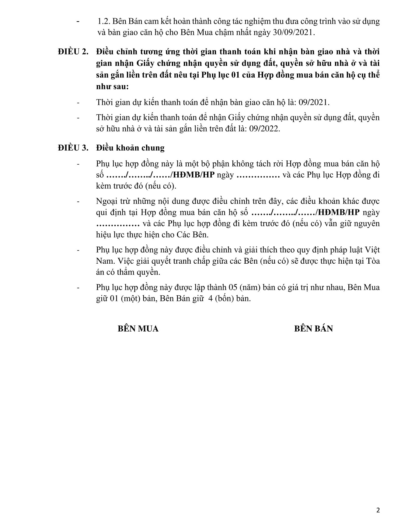 MẪU PHỤ LỤC HỢP ĐỒNG MUA BÁN GIA HẠN THỜI GIAN BÀN GIAO (ĐỐI VỚI NHỮNG CĂN HỘ CÓ THỜI HẠN BÀN GIAO THÁNG 12/2020) TẠI DỰ ÁN THE WESTERN CAPITAL