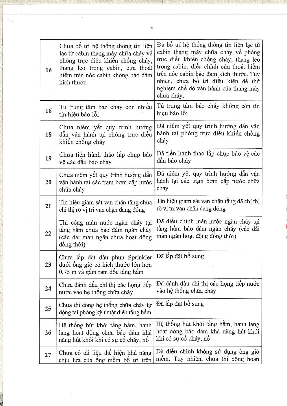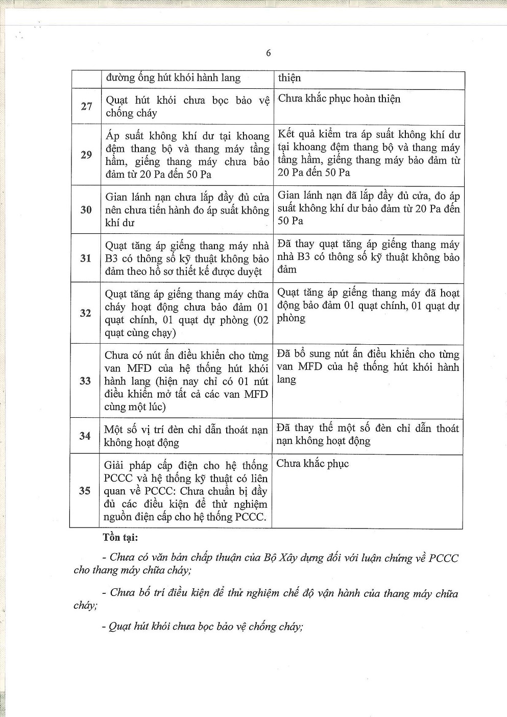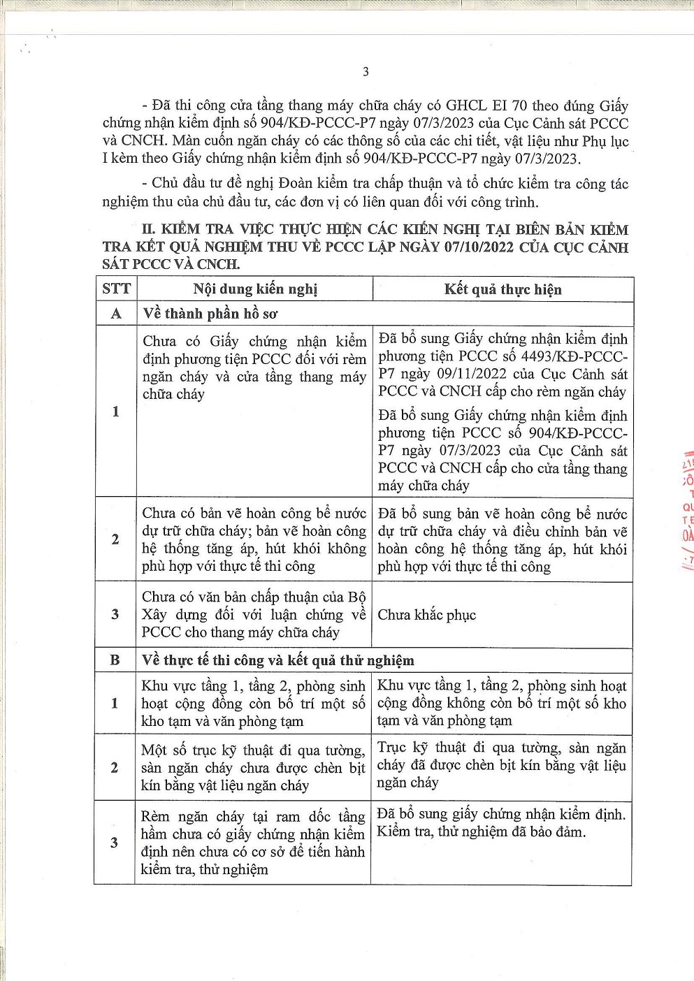 THÔNG BÁO CẬP NHẬT TIẾN ĐỘ KIỂM TRA NGHIỆM THU PCCC LẦN 2