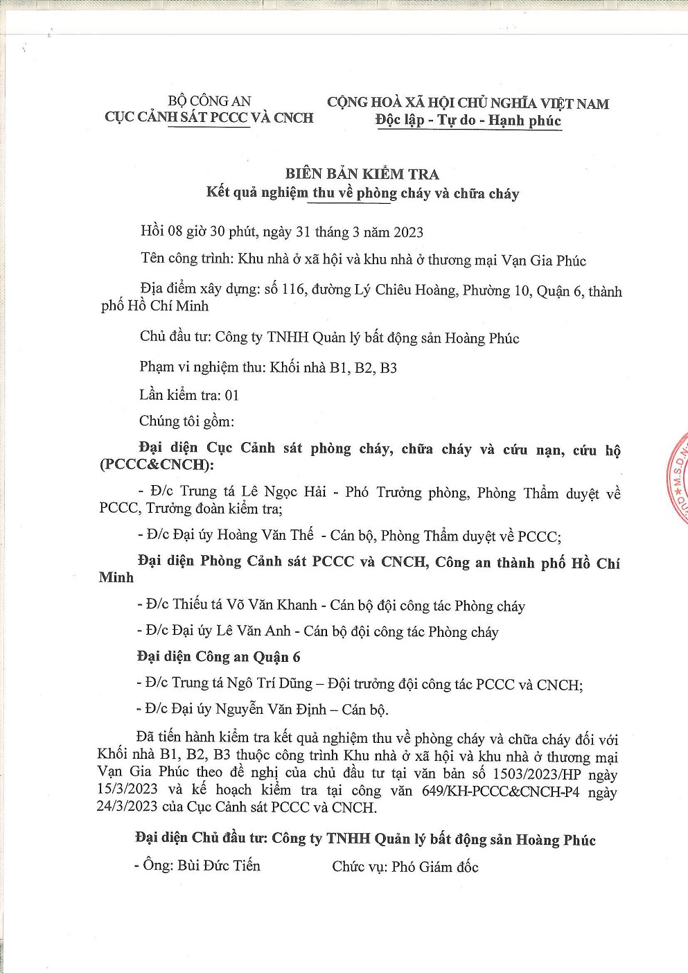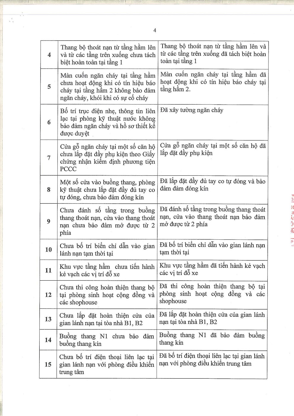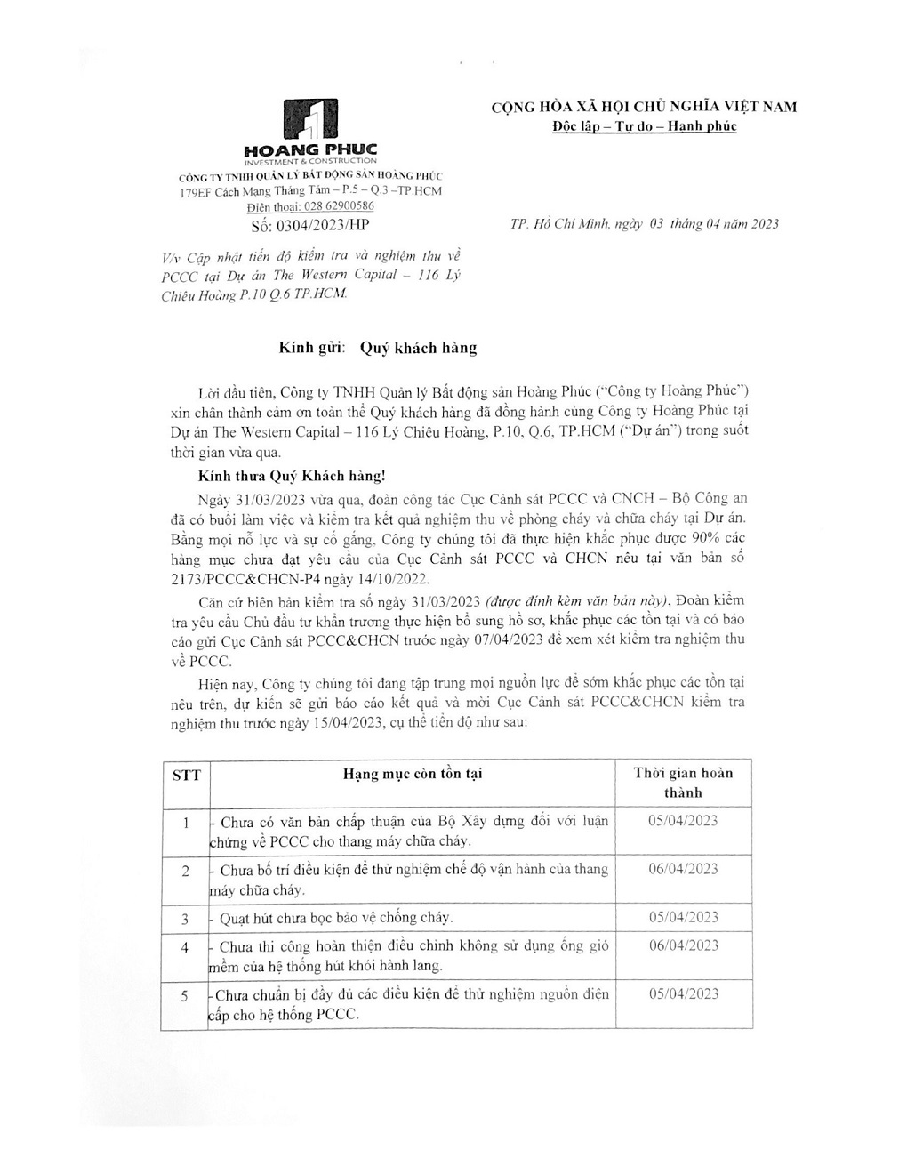 THÔNG BÁO CẬP NHẬT TIẾN ĐỘ KIỂM TRA NGHIỆM THU PCCC LẦN 2