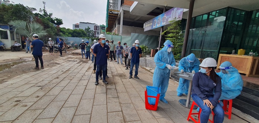 Tuy khó khăn về mọi mặt, nhưng BGĐ Công ty Hoàng Phúc vẫn luôn nỗ lực vượt khó duy trì thi công cố gắng đưa dự án về đích. Chủ Đầu tư đã yêu cầu Nhà thầu thực hiện theo chỉ đạo của Ủy Ban Nhân Dân Tp. HCM và Sở Xây Dựng về việc thực hiện các biện pháp phòng chống dịch COVID - 19 tại các công trình xây dựng trên địa bàn Thành Phố như sau: