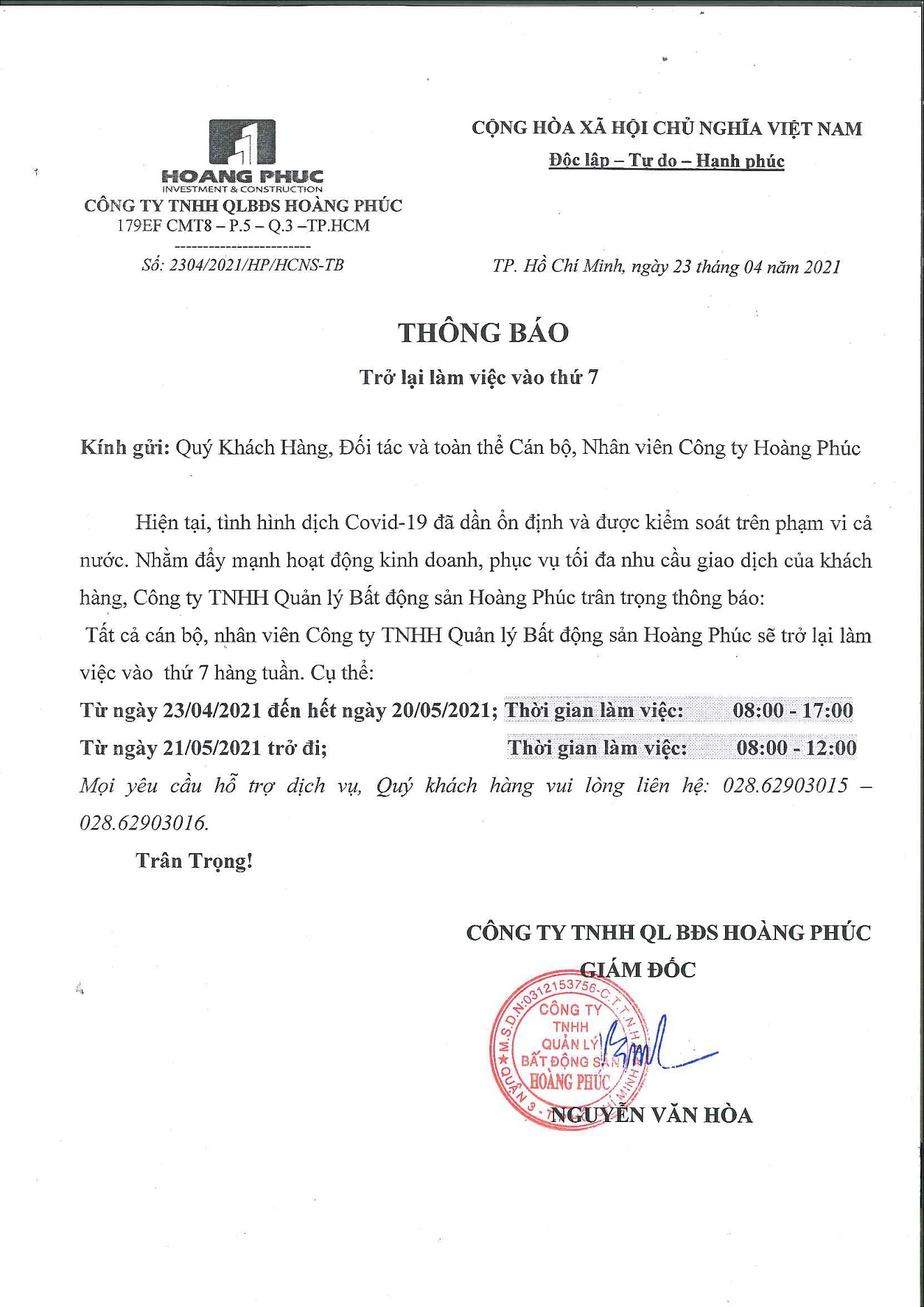 THÔNG BÁO LỊCH LÀM VIỆC TẠI VĂN PHÒNG