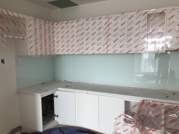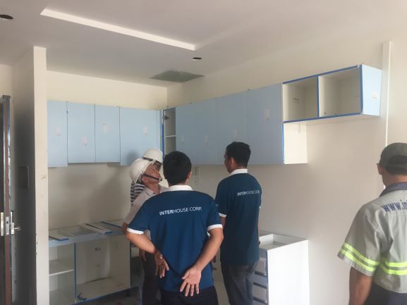 thi công lắp đặt sàn gỗ và tủ bếp đến tầng 3