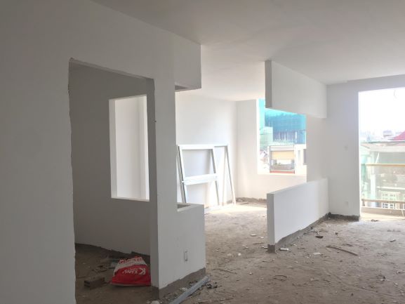 thi công lát gạch, chống thấm và trần thạch cao đến tầng 12